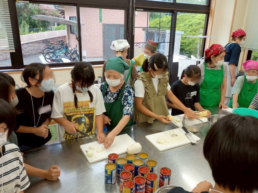 夕食は、サバ缶やトマト缶の缶詰を開ける体験もしつつ、トマトサバカレーを作り、校区の人たちと一緒に食べました。