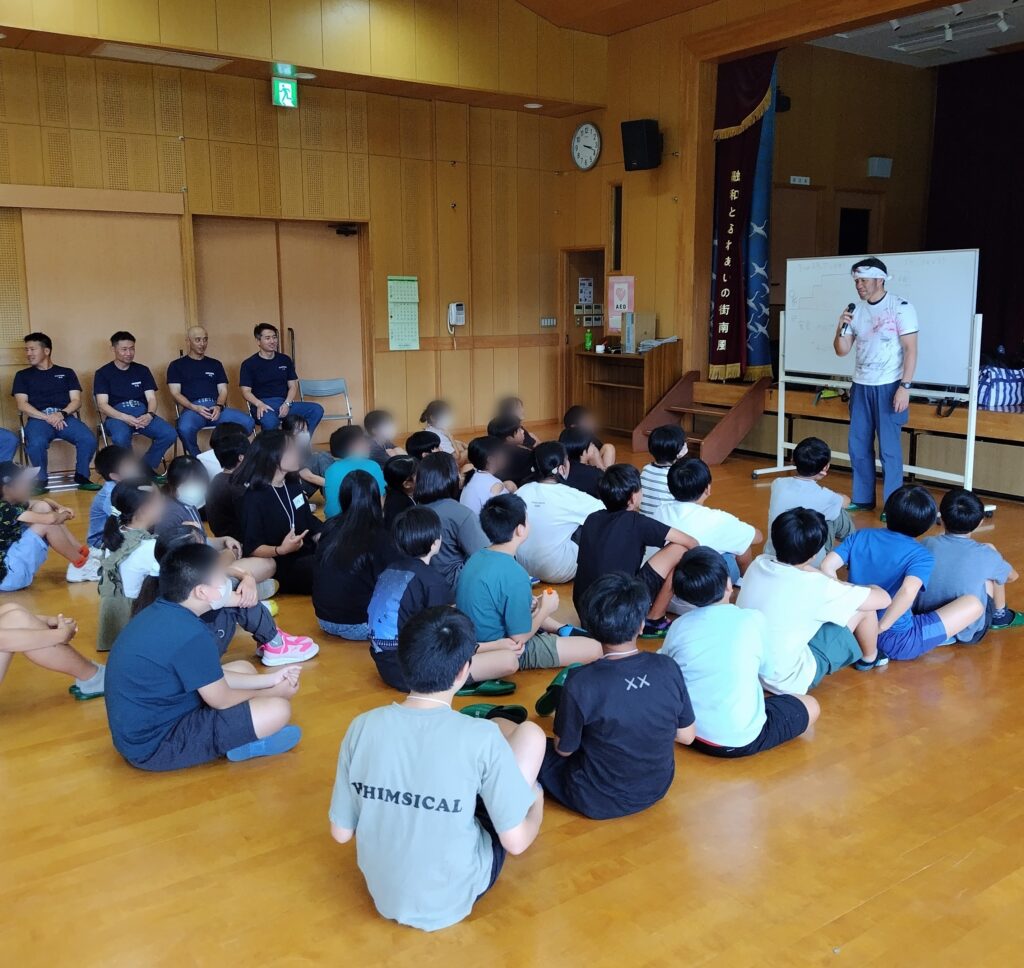 避難生活を疑似体験し防災について学びつつ、小学校生活最後の思い出づくりに思いっきり楽しむことを主眼とし、「考えて動く、動きながら考える『考動』と、互いの考えを出し合って目標に向う『協力』、この二つを実践して、楽しみながら学んでほしいとの思いを伝えました。